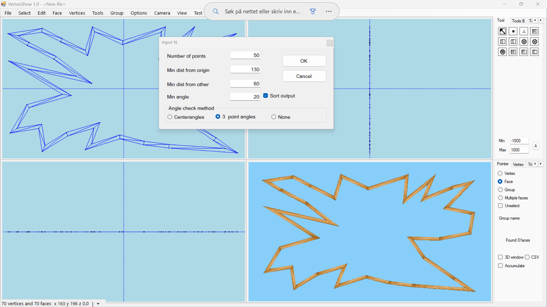 Create random vertices that is on the xy plane from menu "Test/Create random points". Then press CTRL + A to make a offset.